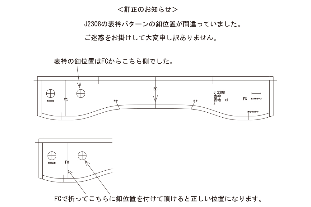 J1801ラペルコートの説明書12,13ページに間違いがありました。