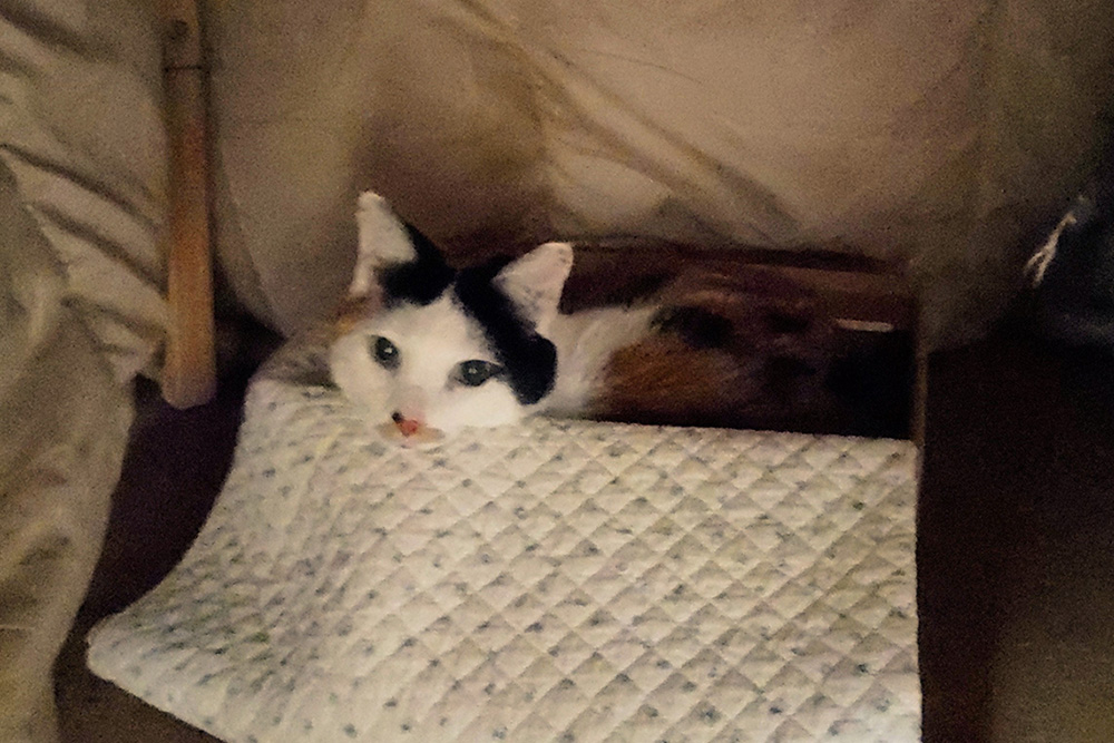 いたずらで活発なネコよりも、おとなしくて落ち着いたネコを探しました。手が掛からないのではないか、という安易な気持ちでした。子猫を飼いたがる子どもはどうしても元気で活発な子の方に人気が集まりますので、チョメは子猫の中では貰い手が無く、だいぶ施設で過ごしているようでした。