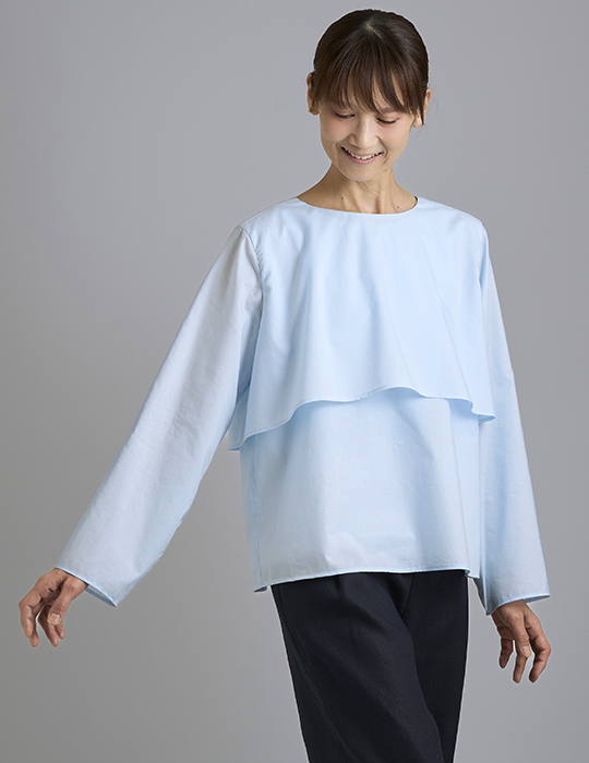 ケープのフレアーが波打つのが印象的なふんわりとしたブラウスです。