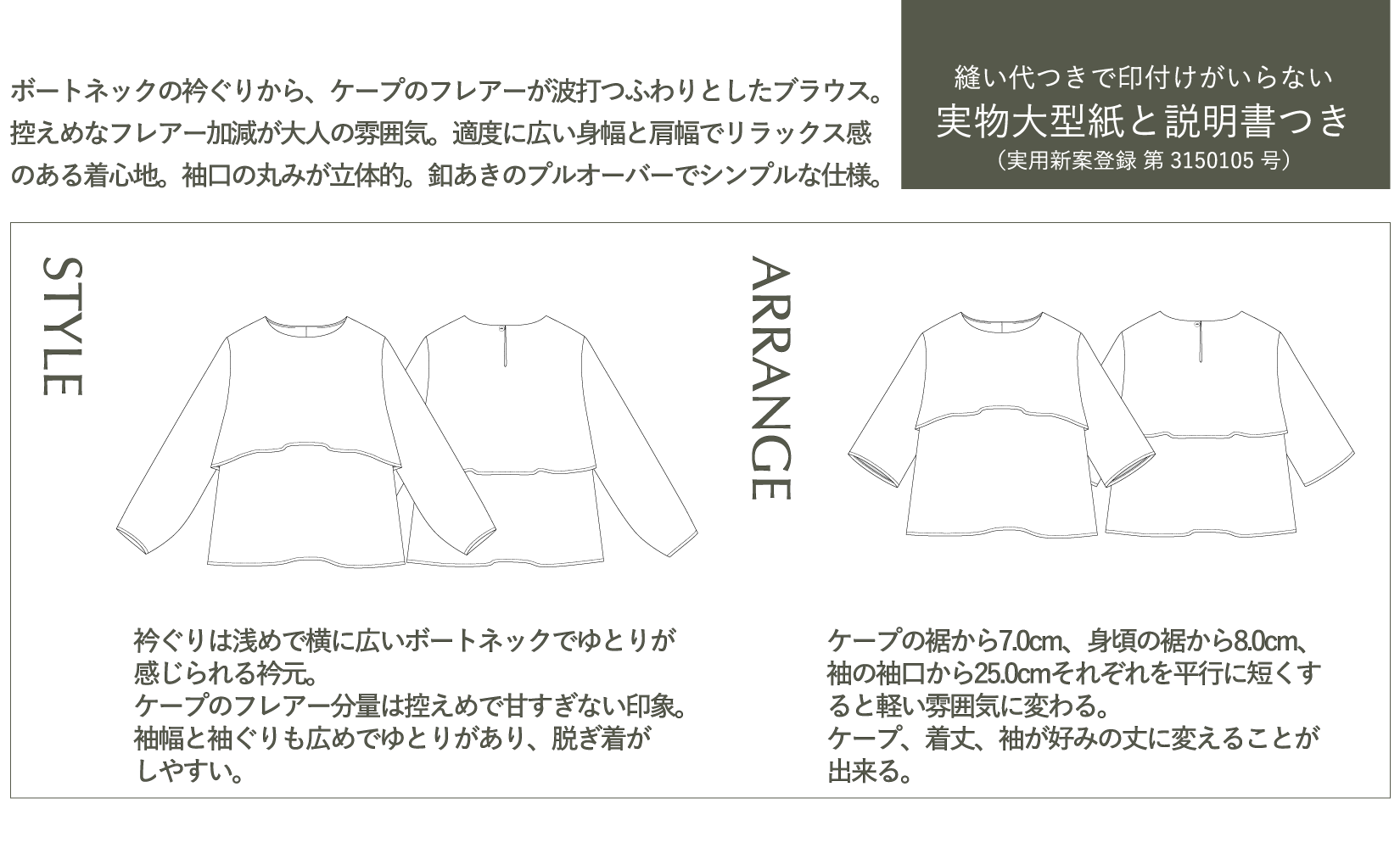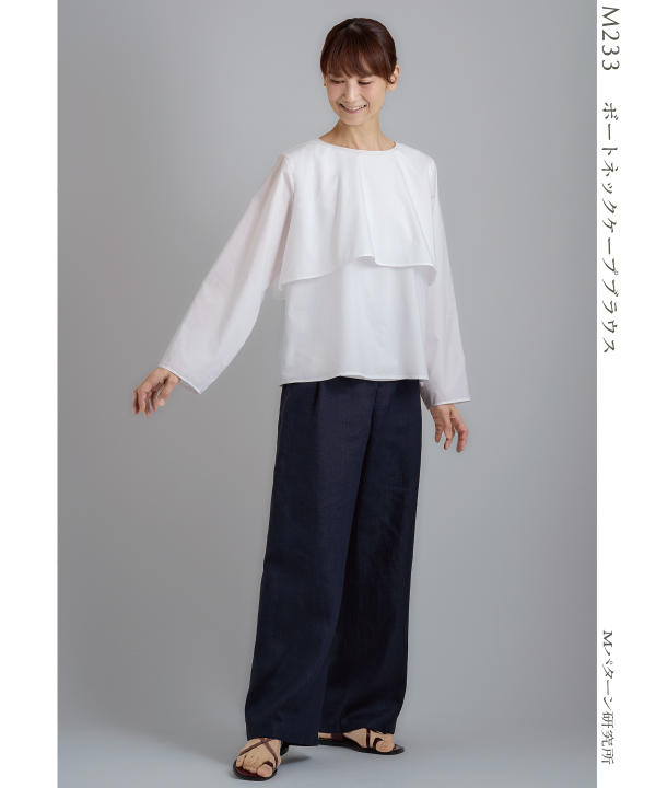 長袖を半袖にして、着丈を8.0cm短く、ケープ丈も7.0cm短くして、夏に着る軽いブラウスにアレンジしてみました。
