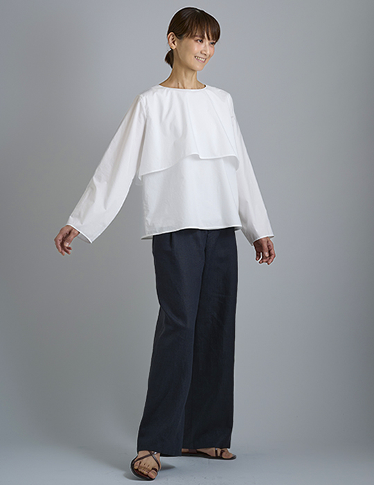 ケープのフレアーが波打つのが印象的なふんわりとしたブラウスです。